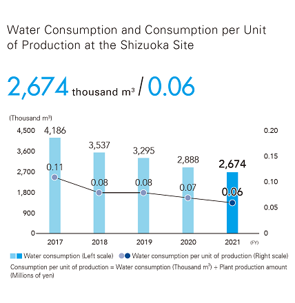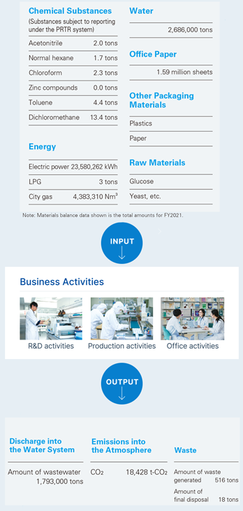 At the Shizuoka Site and the Drug Research Center in Kyoto, each and every employee recognizes input and output that place burden on the environment during the course of business activities ranging from research and development to production and office activities, and is working to reduce environmental pollution.