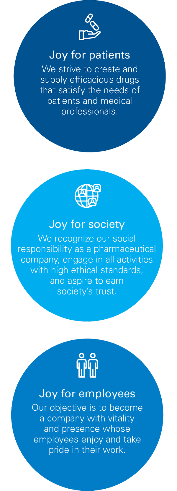 The KAKEN Group delivers value to society and contributes to achieving a sustainable society by practicing its corporate philosophy: “KAKEN helps improve the quality of life of patients by serving as many people as possible to return smiles of happiness to their faces, through supplying superior pharmaceuticals.” We believe that this will lead to sustainable growth of the Group. In order to set out the challenges and initiatives in achieving this objective, we have identified material issues related to the KAKEN Group’s future value creation.